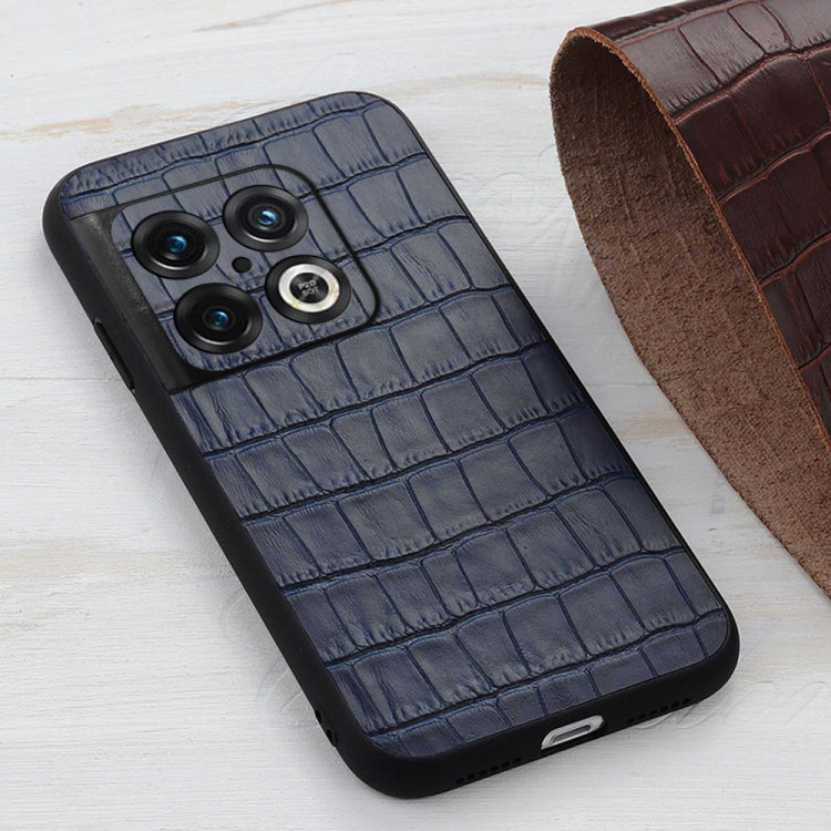 For OnePlus 10 Pro Accurate Hole Crocodile Texture Genuine Leather Phone Case(Blue)
