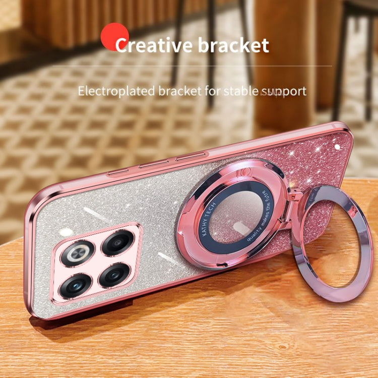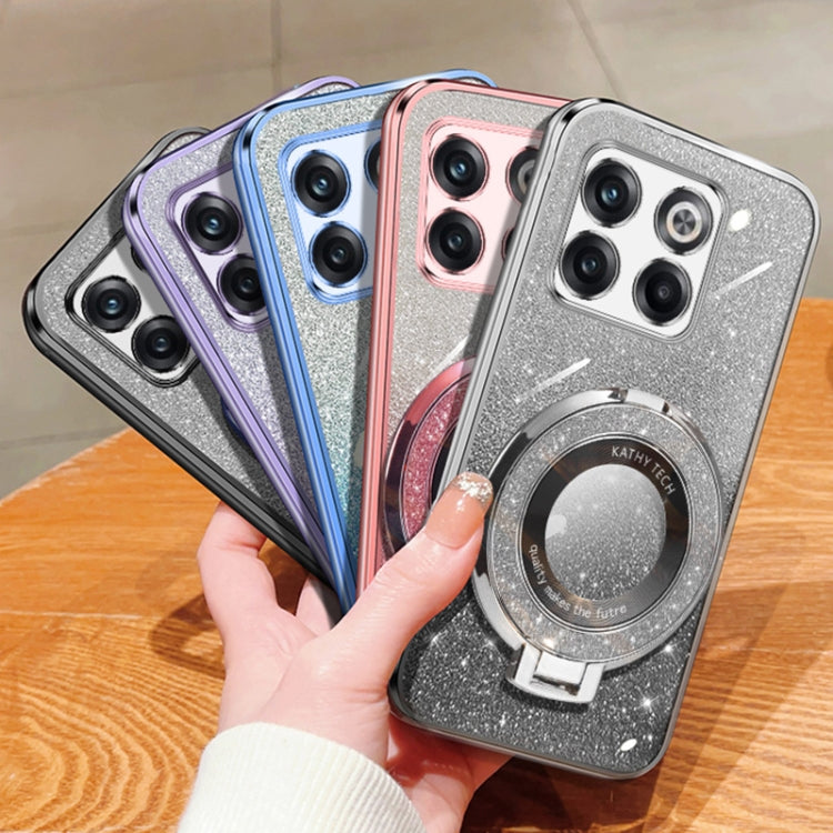 For OnePlus 10T Plated Gradient Glitter Round Holder TPU Phone Case(Black)