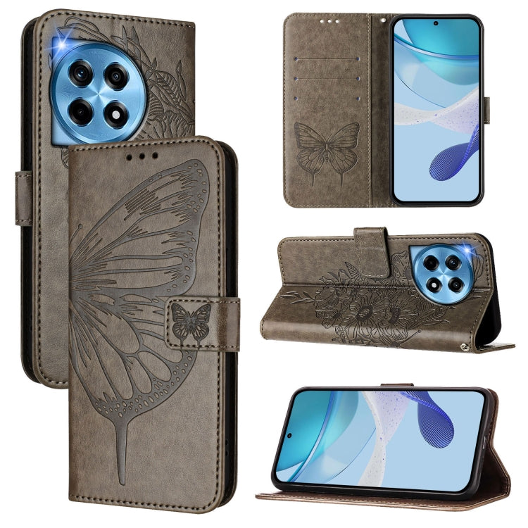 For OnePlus 12R 5G Global Embossed Butterfly Leather Phone Case(Grey)