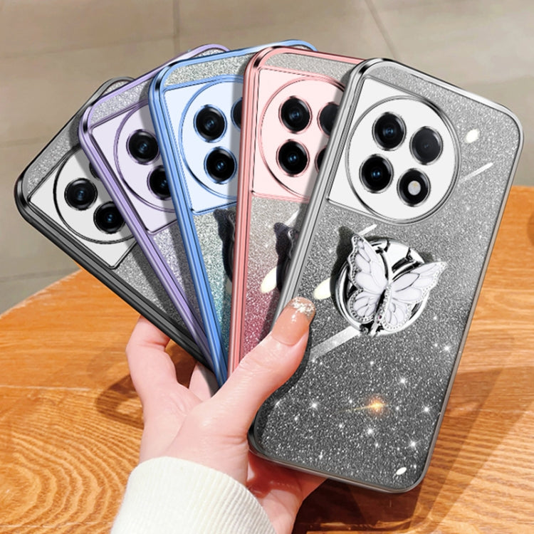 For OnePlus Ace 2 Plated Gradient Glitter Butterfly Holder TPU Phone Case(Black)