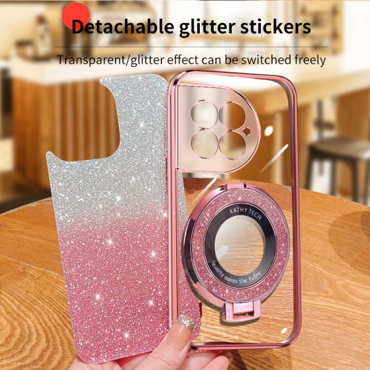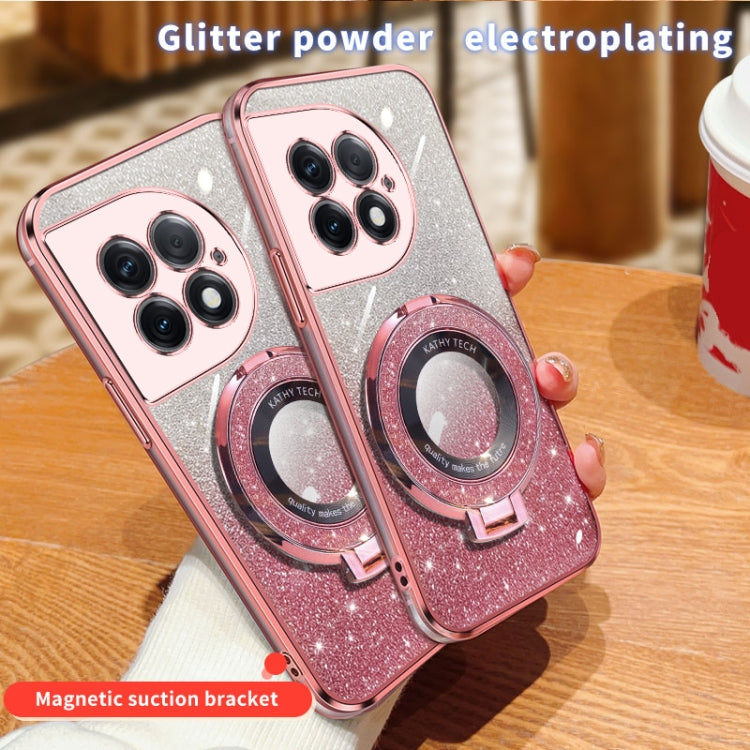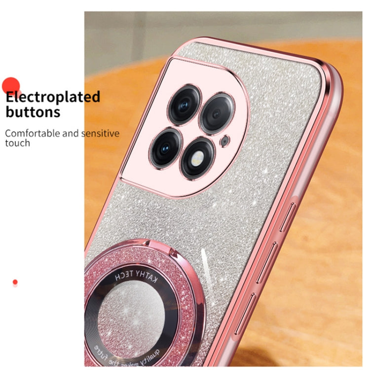 For OnePlus Ace 2 Pro Plated Gradient Glitter Round Holder TPU Phone Case(Pink)