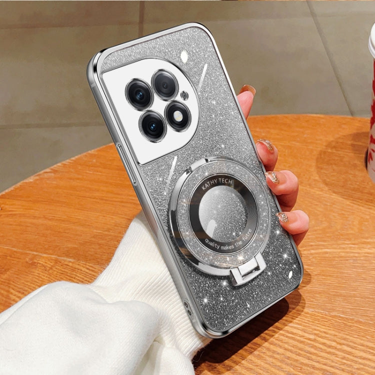 For OnePlus Ace 2 Pro Plated Gradient Glitter Round Holder TPU Phone Case(Silver)