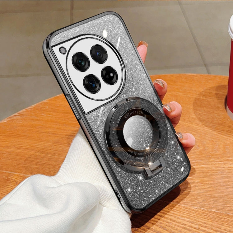 For OnePlus Ace 3 Plated Gradient Glitter Round Holder TPU Phone Case(Black)