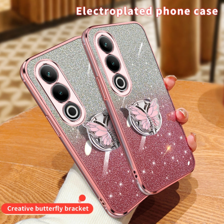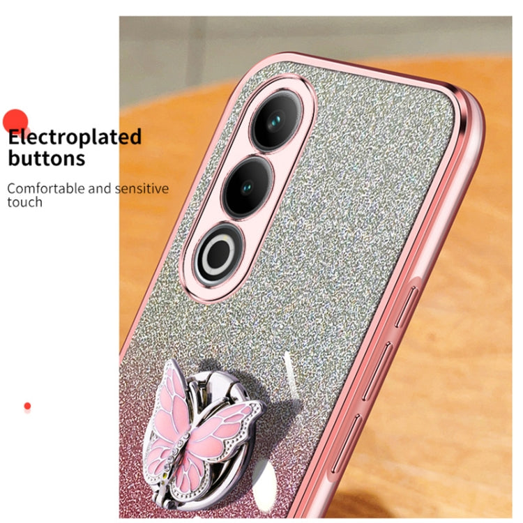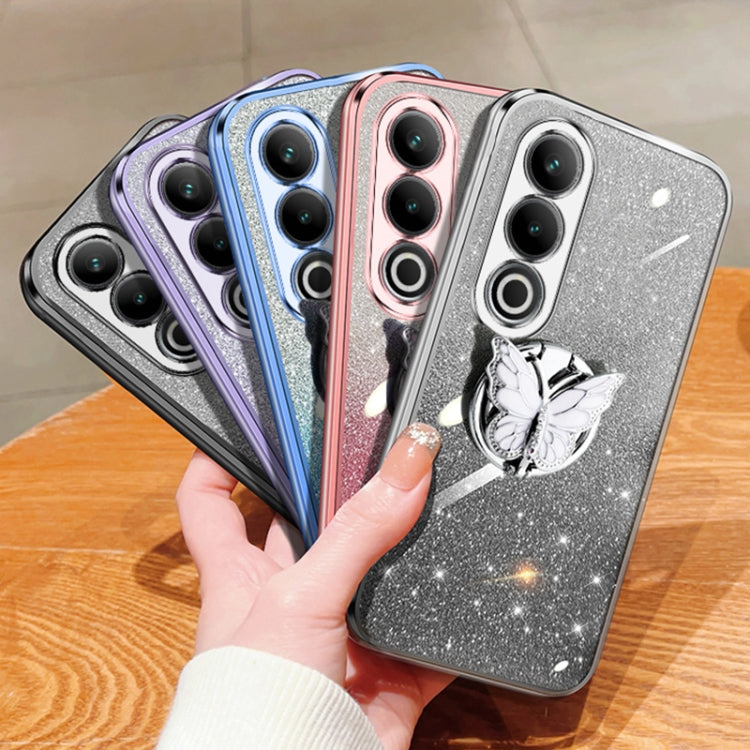 For OnePlus Ace 3V Plated Gradient Glitter Butterfly Holder TPU Phone Case(Sierra Blue)
