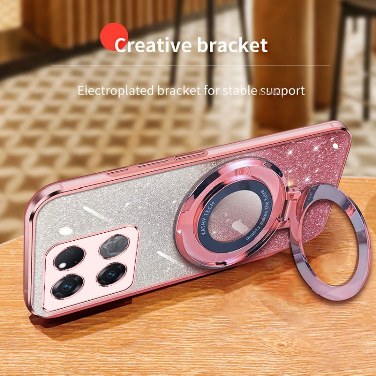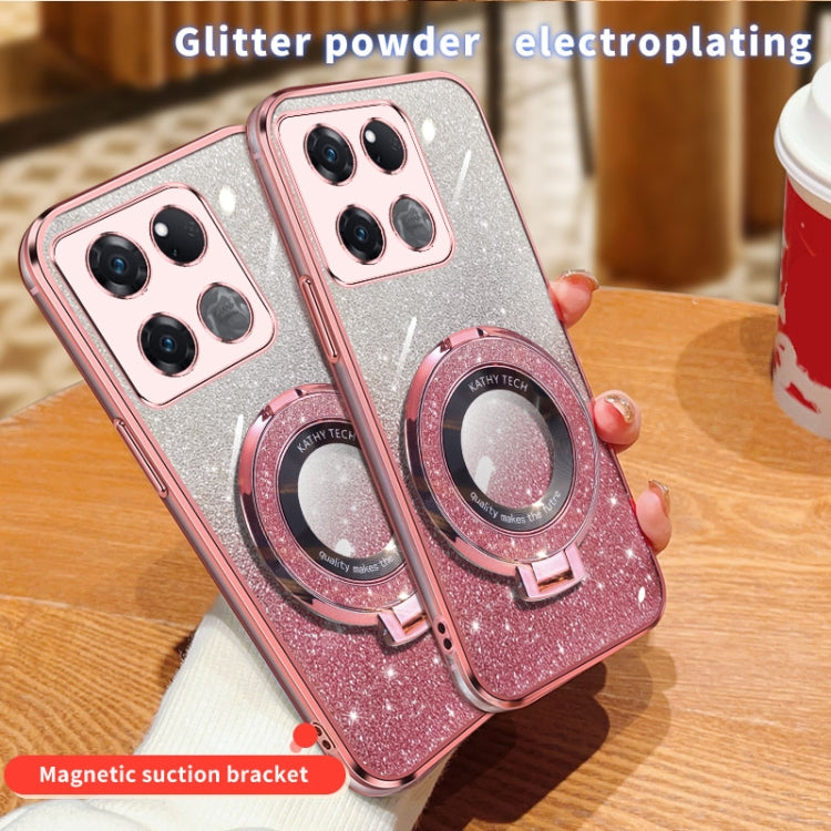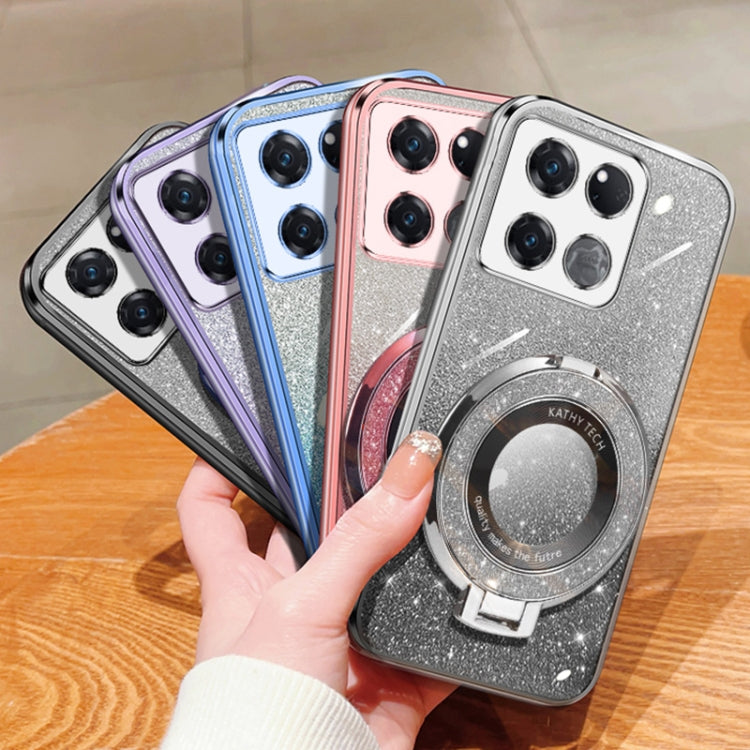 For OnePlus Ace Racing Plated Gradient Glitter Round Holder TPU Phone Case(Silver)