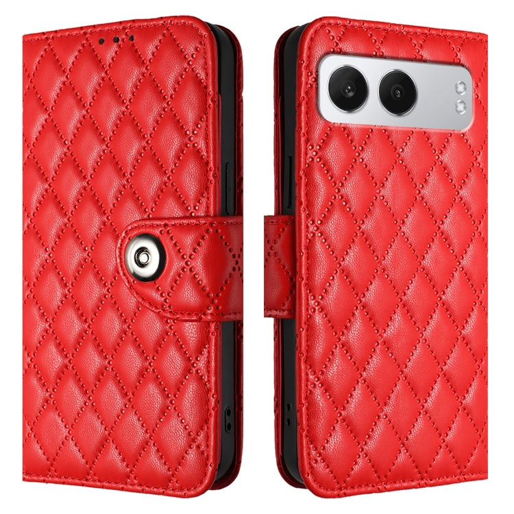 For OnePlus Nord 4 5G Rhombic Texture Flip Leather Phone Case with Lanyard(Red)