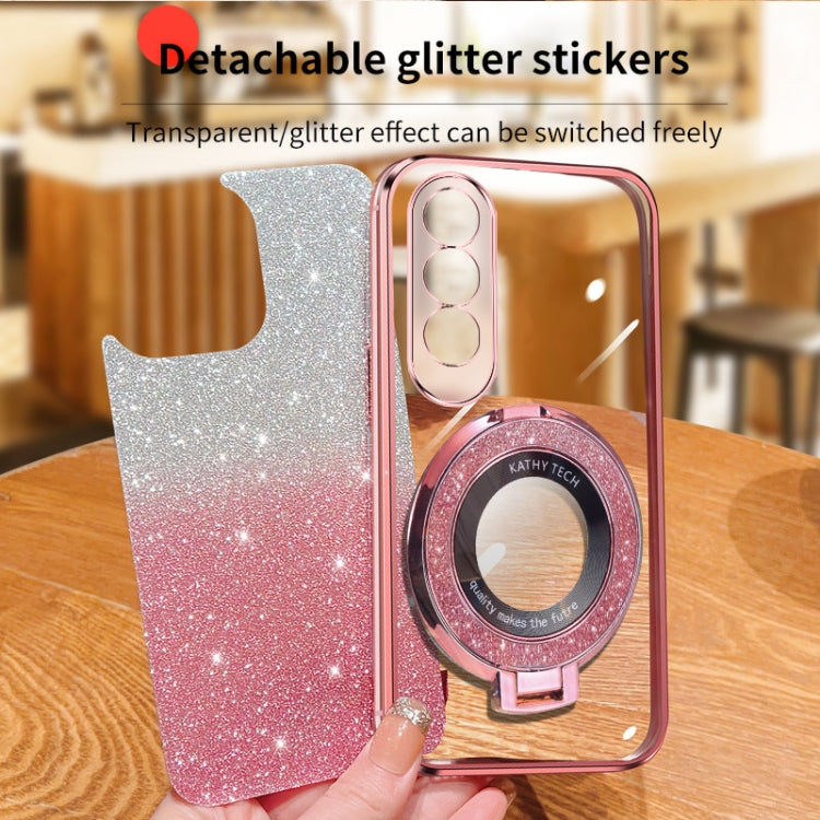 For OnePlus Nord CE4 5G Plated Gradient Glitter Round Holder TPU Phone Case(Silver)