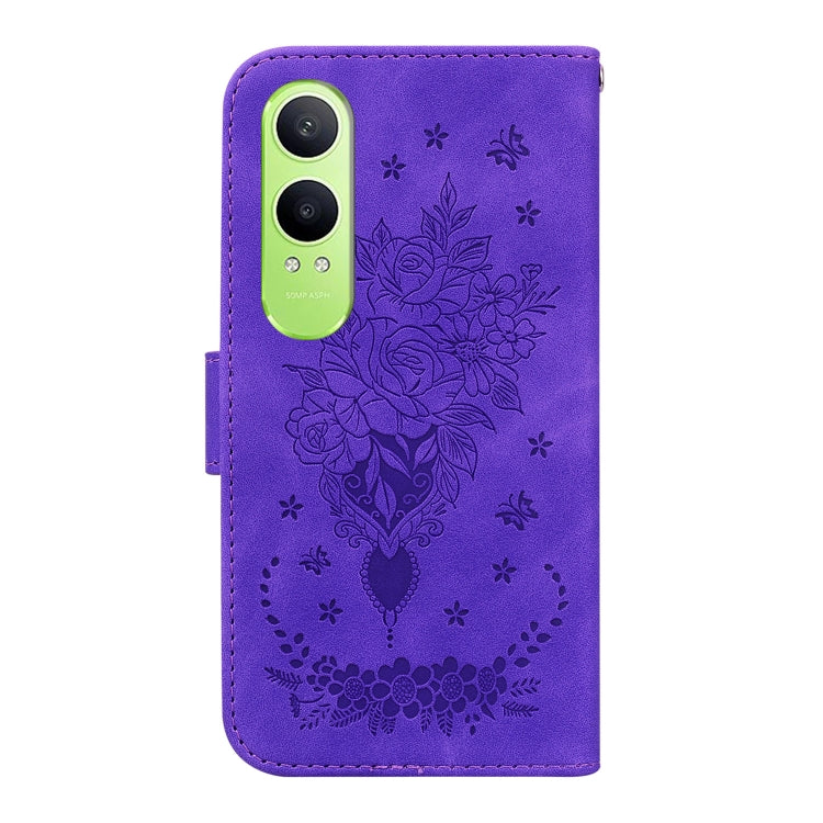 For OnePlus Nord CE4 Lite Butterfly Rose Embossed Leather Phone Case(Purple)