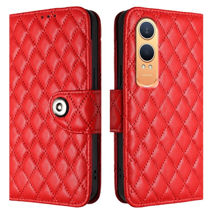 For OnePlus Nord CE4 Lite Rhombic Texture Flip Leather Phone Case with Lanyard(Red)