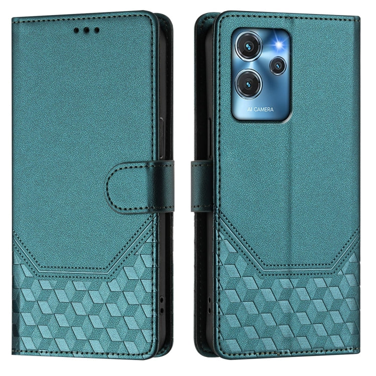 For Oukitel C32 Honeycomb Embossing RFID Leather Phone Case(Peacock Green)