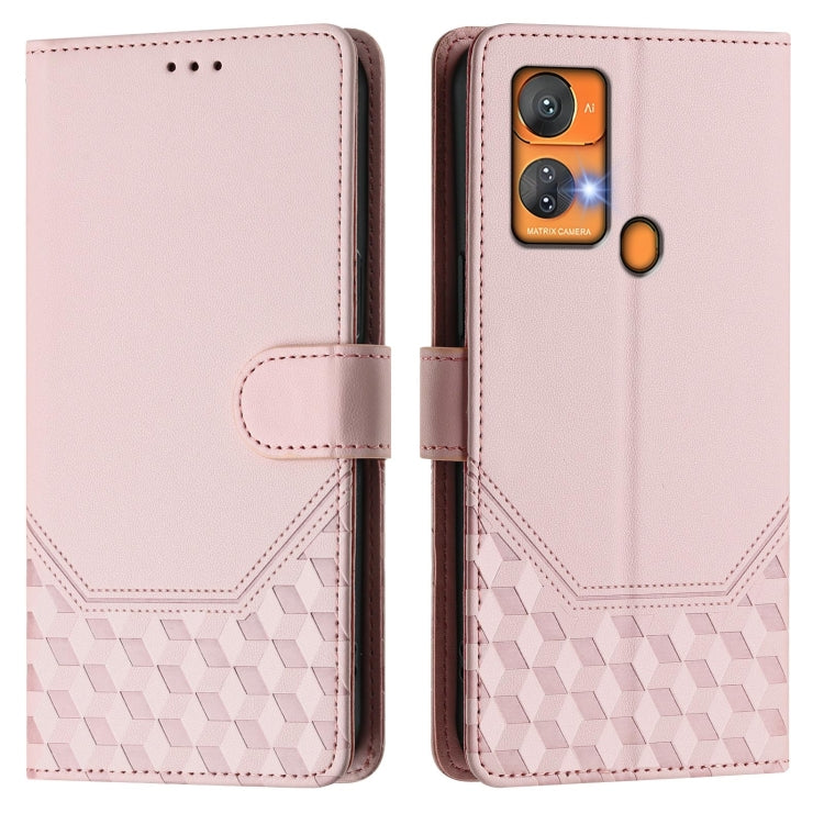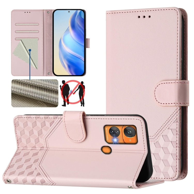 For Oukitel C33 Honeycomb Embossing RFID Leather Phone Case(Pink)