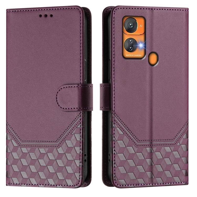 For Oukitel C33 Honeycomb Embossing RFID Leather Phone Case(Violet)