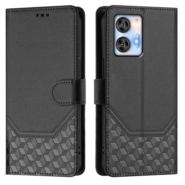 For Oukitel C35 Honeycomb Embossing RFID Leather Phone Case(Black)