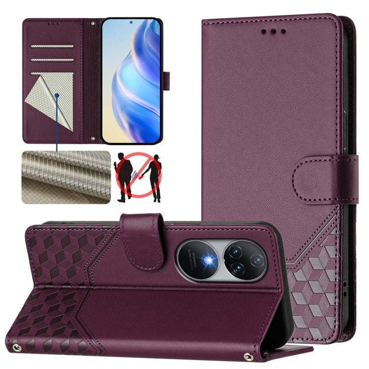 For Oukitel C38 Honeycomb Embossing RFID Leather Phone Case(Violet)
