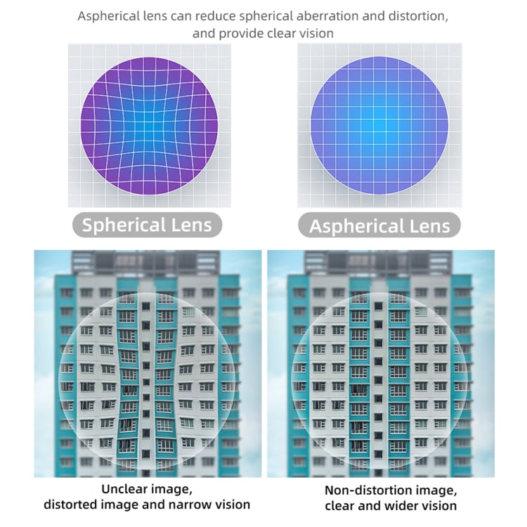 7. Aspherical resin lens: thinner and more transparent than spherical lens, with realistic vision and more comfortable visual effect