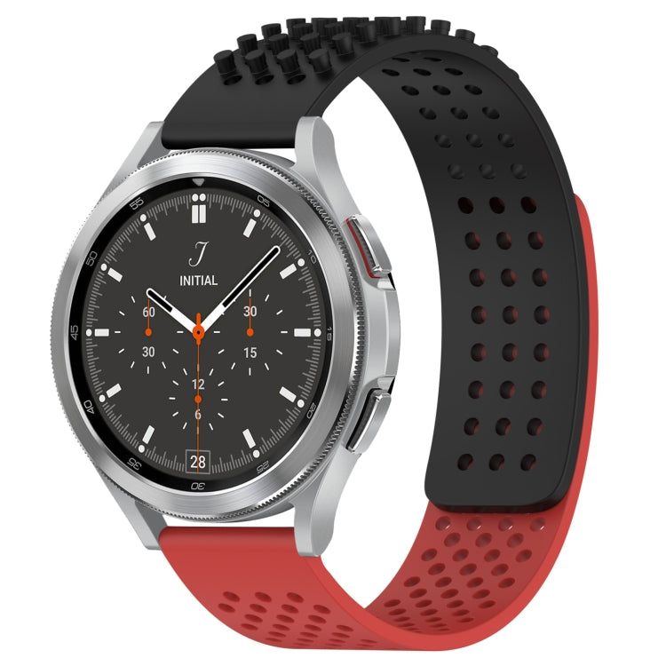 For Samsung Galaxy Watch 4 Classic 46mm 20mm Holes Breathable 3D Dots Silicone Watch Band(Black+Red)
