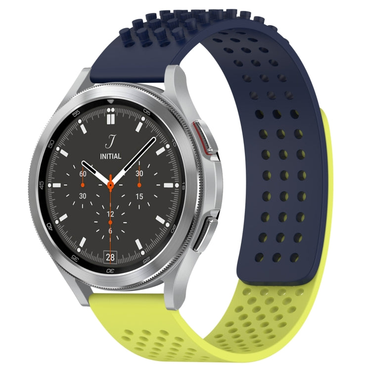 For Samsung Galaxy Watch 4 Classic 46mm 20mm Holes Breathable 3D Dots Silicone Watch Band(Midnight Blue+Lime Green)