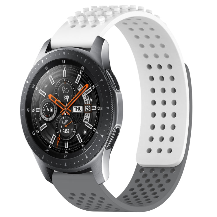 For Samsung Galaxy Watch 46mm 22mm Holes Breathable 3D Dots Silicone Watch Band(White+Grey)