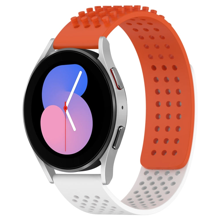 For Samsung Galaxy Watch 5 40mm 20mm Holes Breathable 3D Dots Silicone Watch Band(Orange+White)