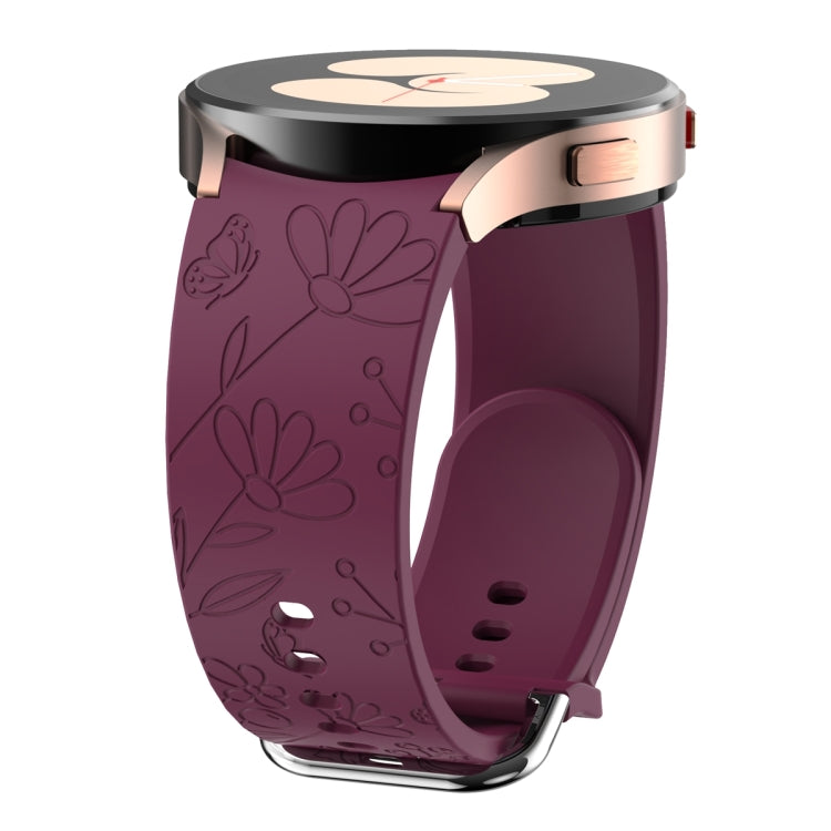 For Samsung Galaxy Watch 6 Butterfly Flower Embossed Silicone Watch Band(Wine Red)
