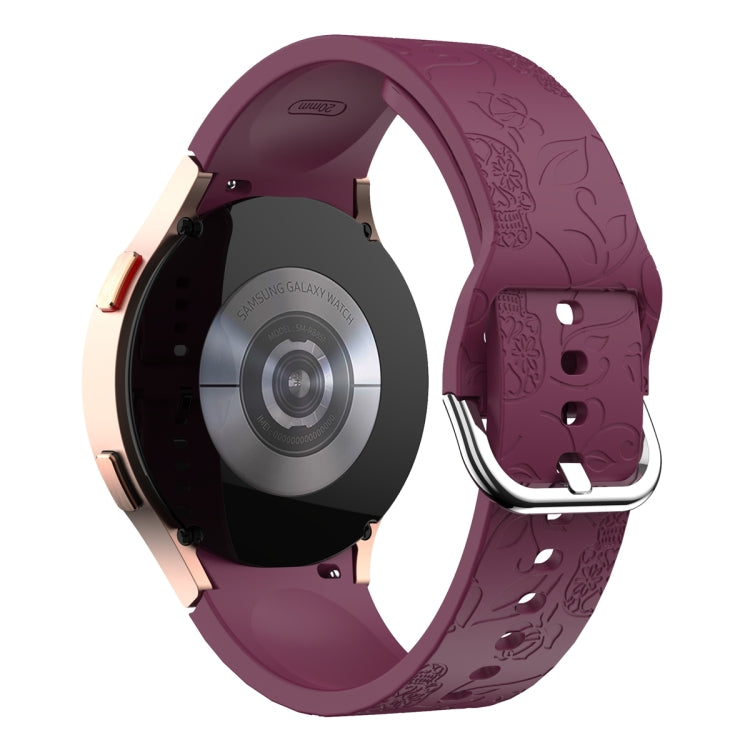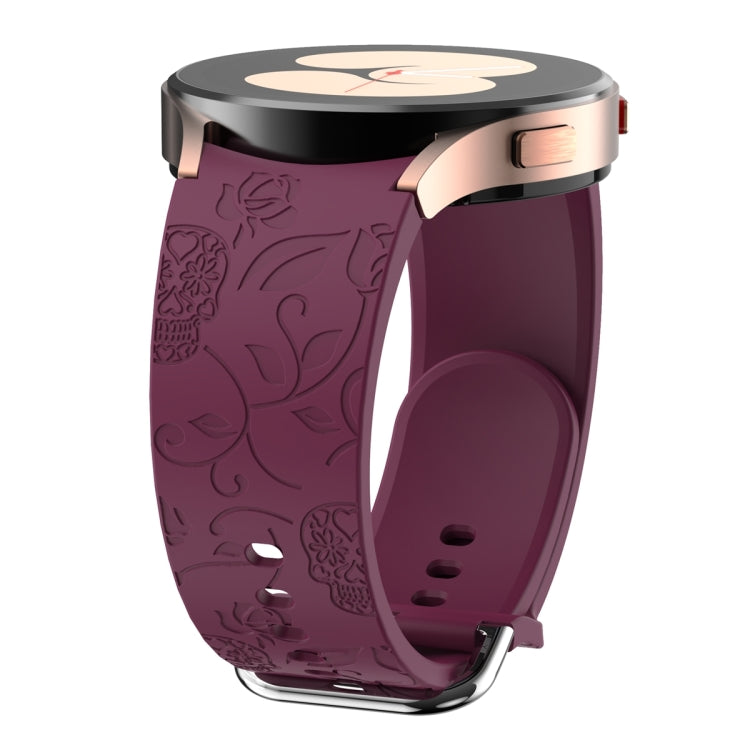 For Samsung Galaxy Watch 6 Skull Flower Embossed Silicone Watch Band(Wine Red)