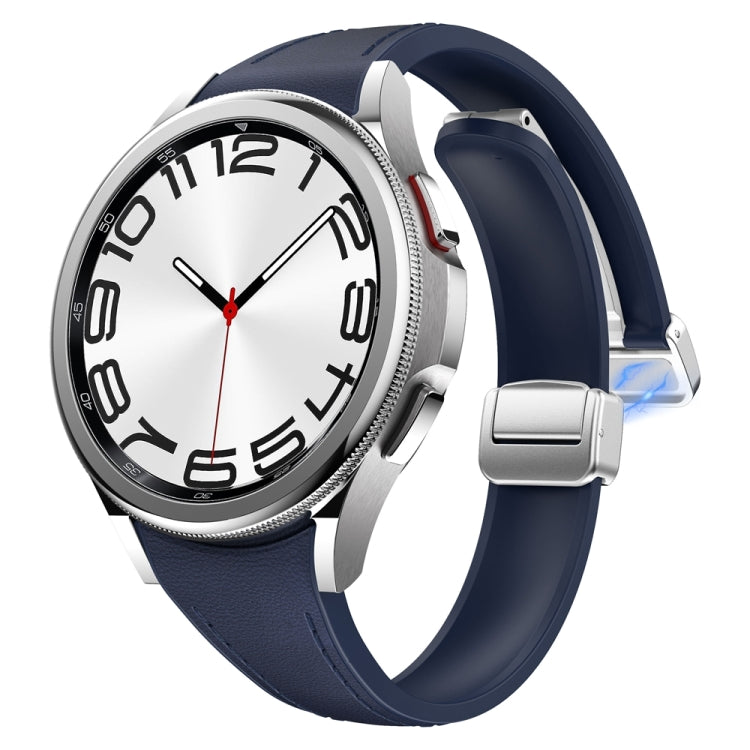 For Samsung Galaxy Watch 6 Slim Magnetic Silver Buckle Leather Silicone Watch Band(Midnight Blue)