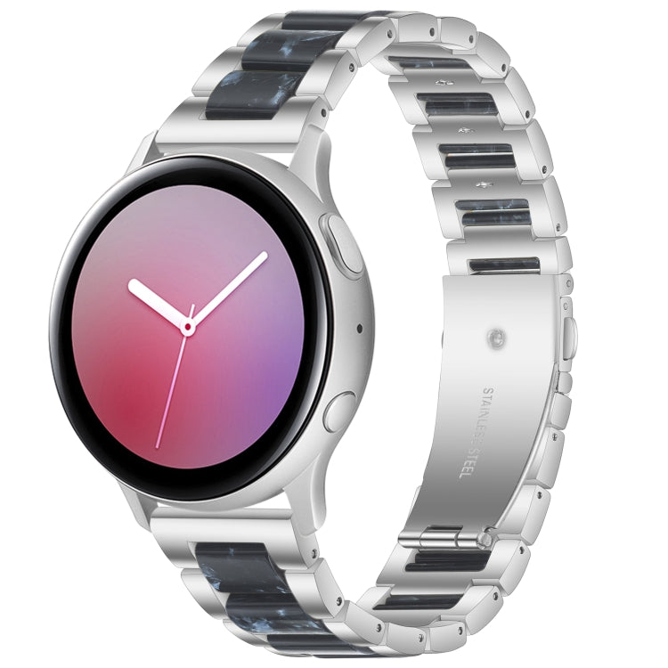 For Samsung Smart Watch 20mm Three-beads Steel + Resin Watch Band(Silver Blue)