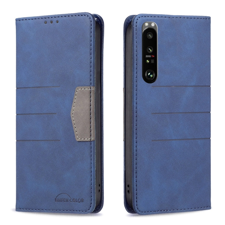 For Sony Xperia 1 III Magnetic Splicing Leather Phone Case(Blue)