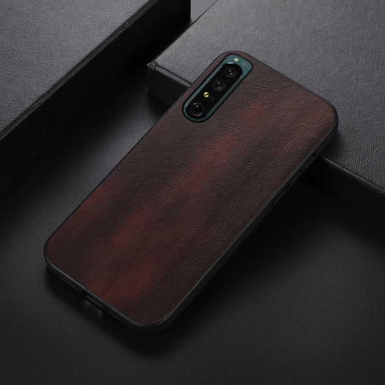 For Sony Xperia 1 IV Yellow Cow Texture PU Phone Case(Coffee)