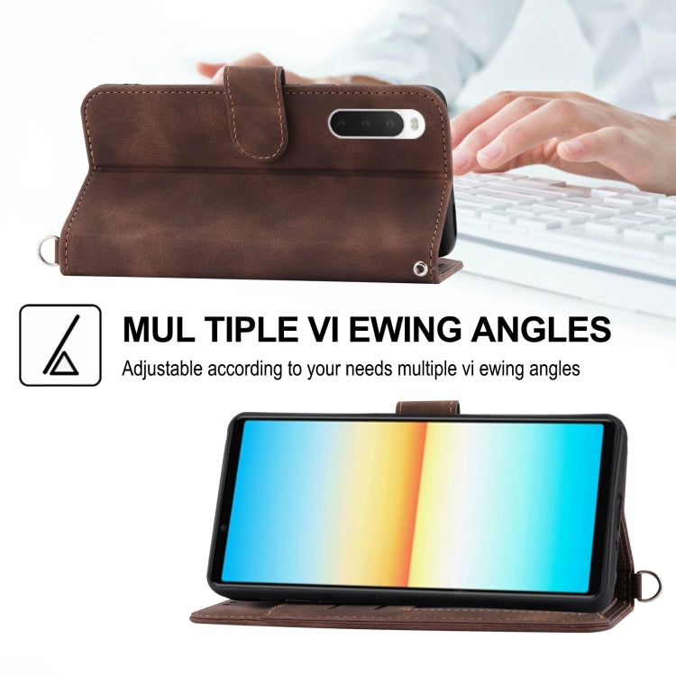For Sony Xperia 1 V 5G Skin-feel Flowers Embossed Wallet Leather Phone Case(Brown)