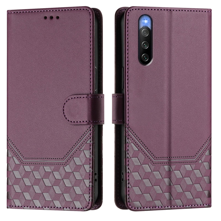 For Sony Xperia 10 V 2023 Honeycomb Embossing RFID Leather Phone Case(Violet)