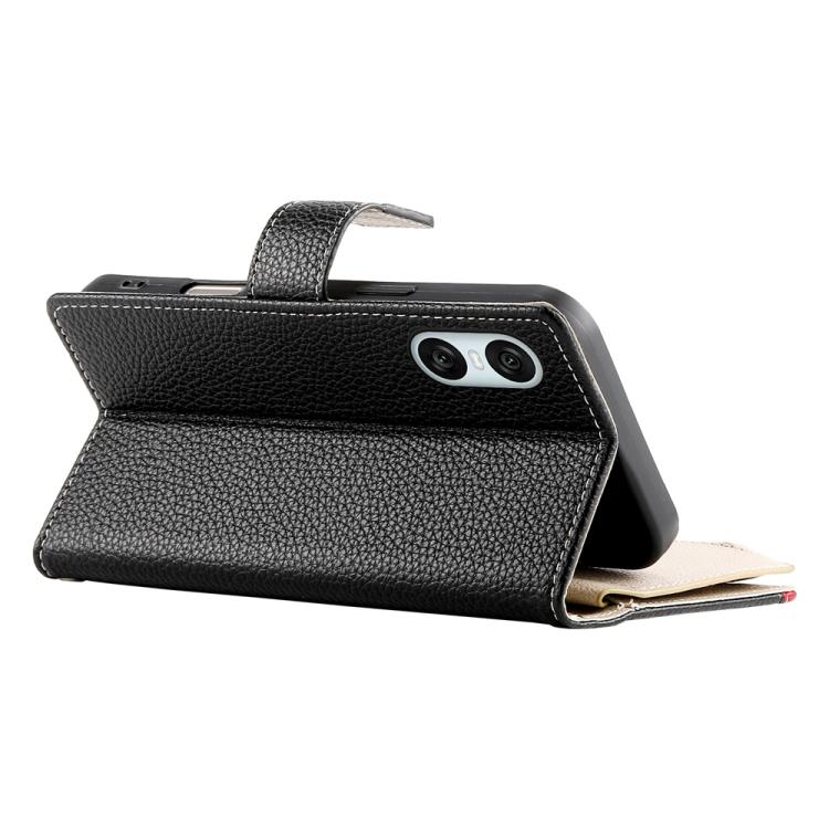 For Sony Xperia 10 VI Stitching Multi-card Zipper Wallet Leather Phone Case with Short Strap(Black)