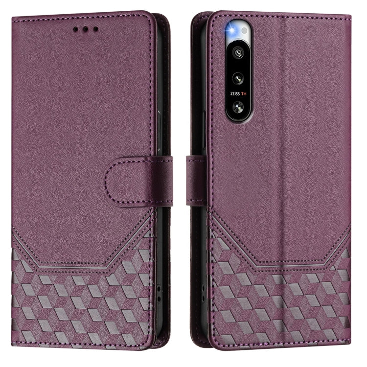 For Sony Xperia 5 IV Honeycomb Embossing RFID Leather Phone Case(Violet)