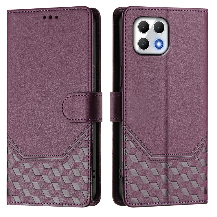 For T-Mobile Revvl 7 Honeycomb Embossing RFID Leather Phone Case(Violet)