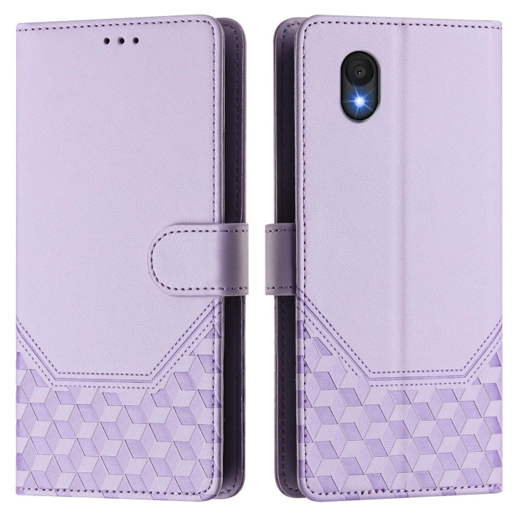 For TCL 201 Honeycomb Embossing RFID Leather Phone Case(Light Purple)
