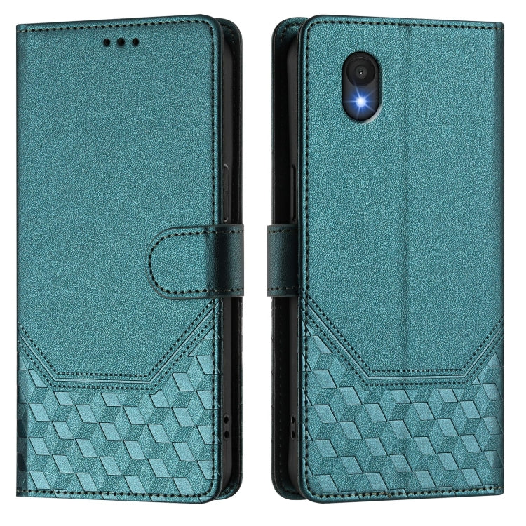 For TCL 201 Honeycomb Embossing RFID Leather Phone Case(Peacock Green)