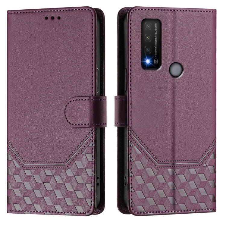 For TCL 20R Honeycomb Embossing RFID Leather Phone Case(Violet)