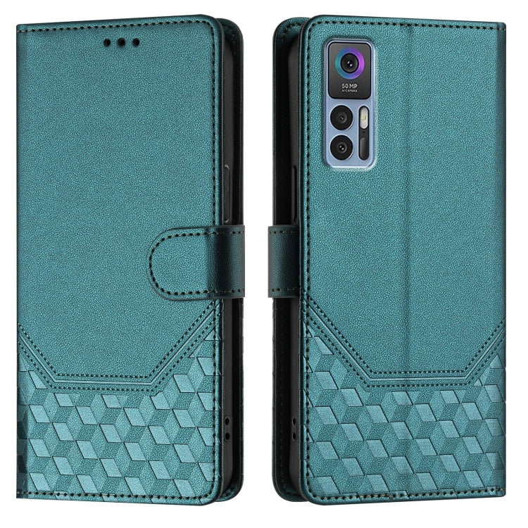 For TCL 30 5G / 4G / 30+ Honeycomb Embossing RFID Leather Phone Case(Peacock Green)