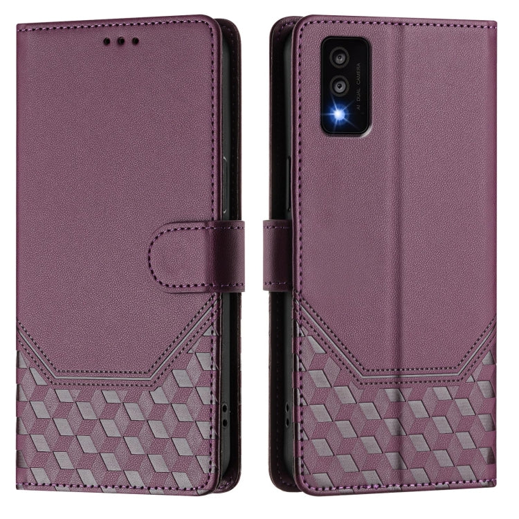 For TCL 30T Honeycomb Embossing RFID Leather Phone Case(Violet)