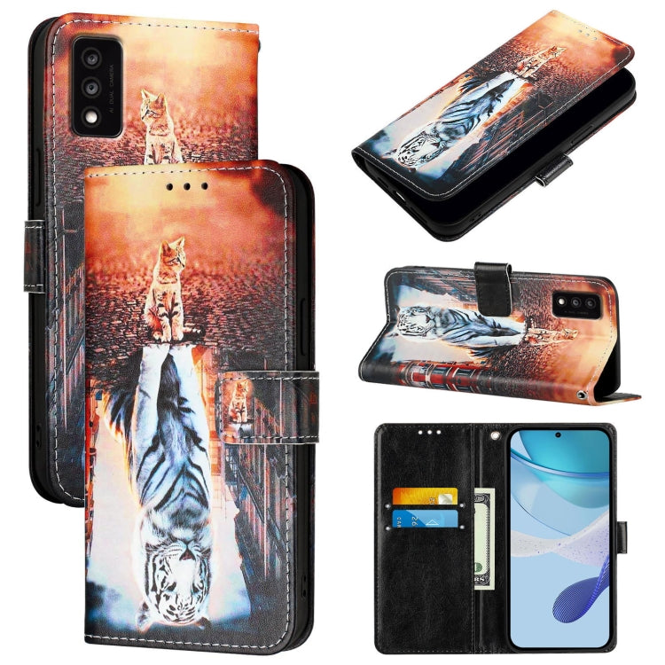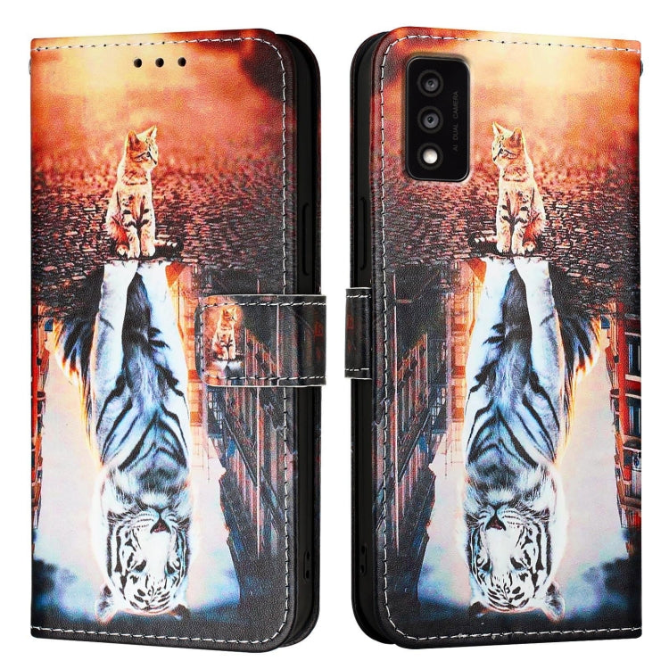 For TCL 30T T603DL Colored Drawing Pattern Plain Weave Leather Phone Case(Cats And Tigers)