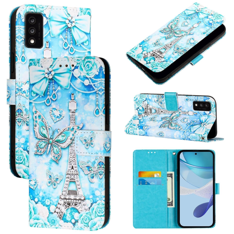 For TCL 30T T603DL Colored Drawing Pattern Plain Weave Leather Phone Case(Tower Butterfly)