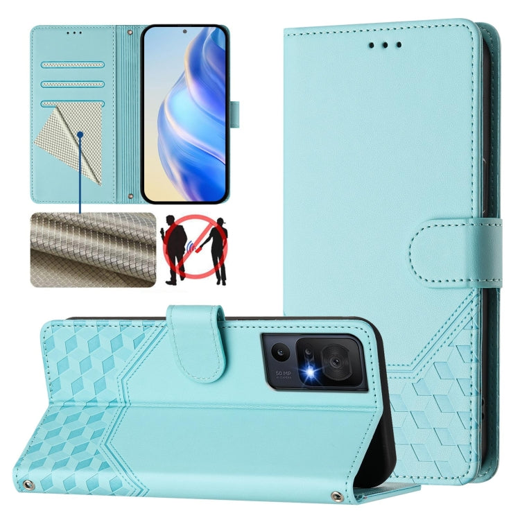 For TCL 40 SE Honeycomb Embossing RFID Leather Phone Case(Mint Green)