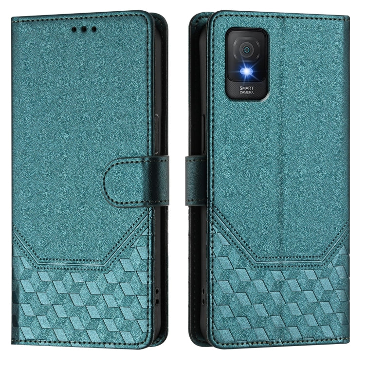 For TCL 403 Honeycomb Embossing RFID Leather Phone Case(Peacock Green)