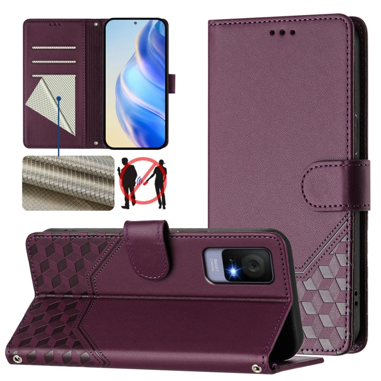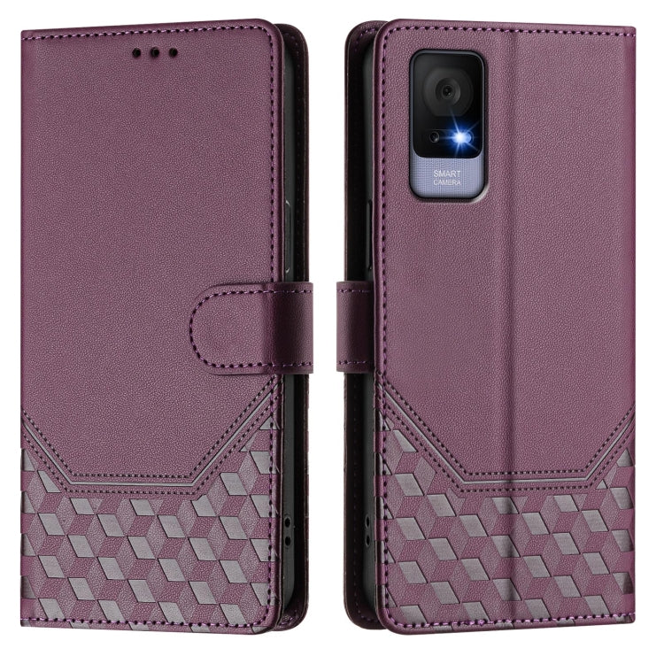 For TCL 405 / 406 / 408 Honeycomb Embossing RFID Leather Phone Case(Violet)