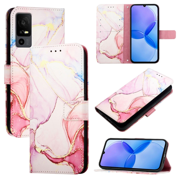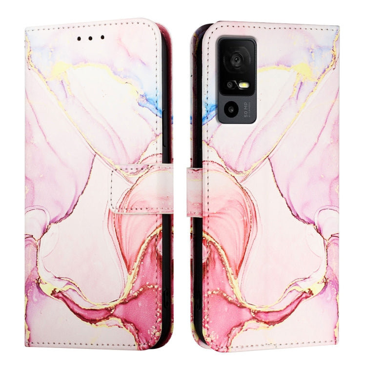 For TCL 40R 5G PT003 Marble Pattern Flip Leather Phone Case(Rose Gold)