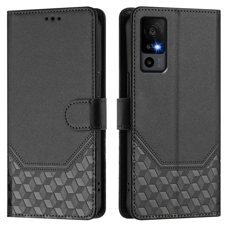 For TCL 40R Honeycomb Embossing RFID Leather Phone Case(Black)