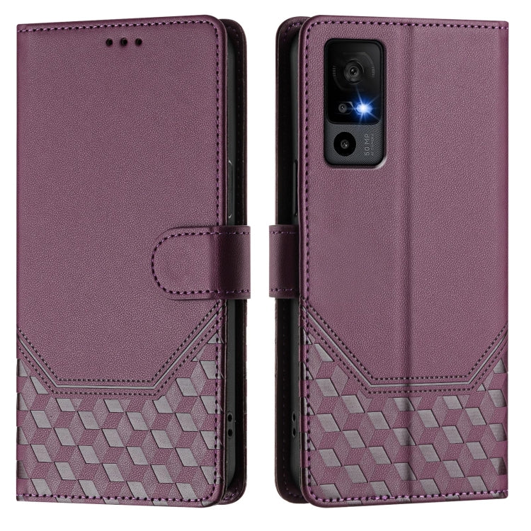 For TCL 40R Honeycomb Embossing RFID Leather Phone Case(Violet)