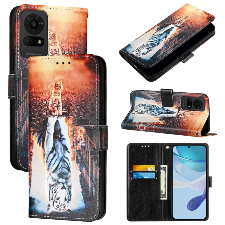 For TCL 50 LE 5G Colored Drawing Pattern Plain Weave Leather Phone Case(Cats And Tigers)