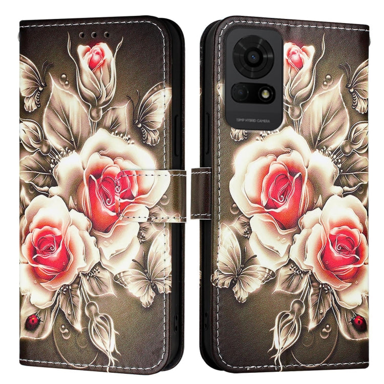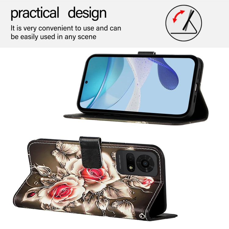 For TCL 50 LE 5G Colored Drawing Pattern Plain Weave Leather Phone Case(Roses On Black)