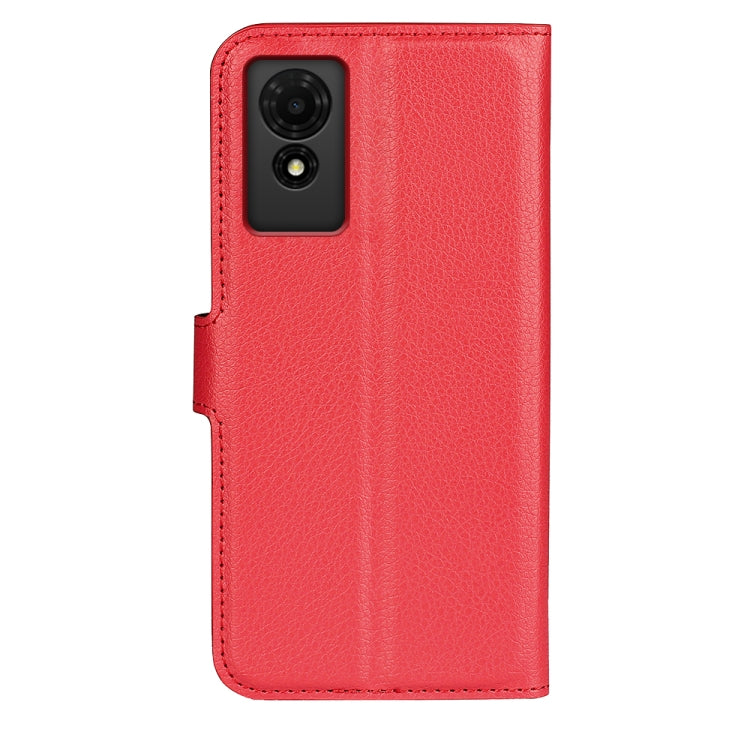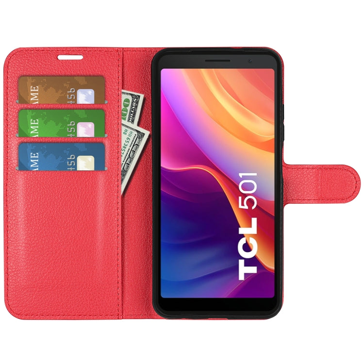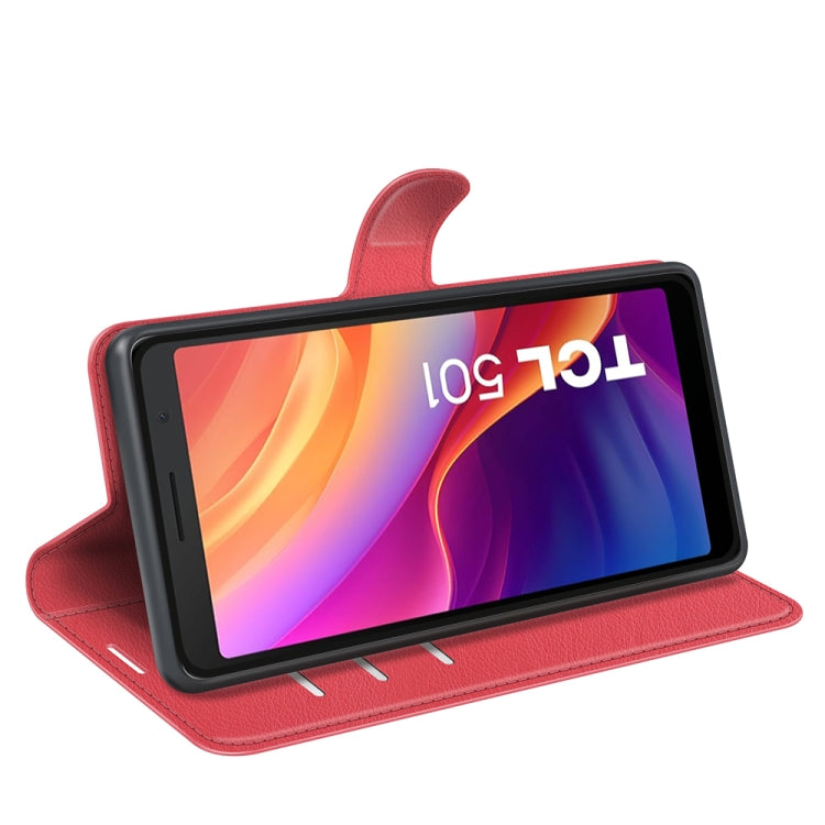 For TCL 501 Litchi Texture Horizontal Flip Leather Phone Case with Holder(Red)